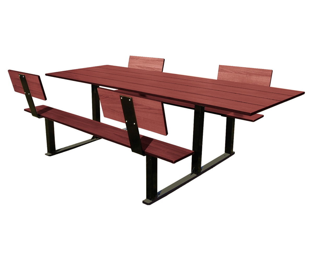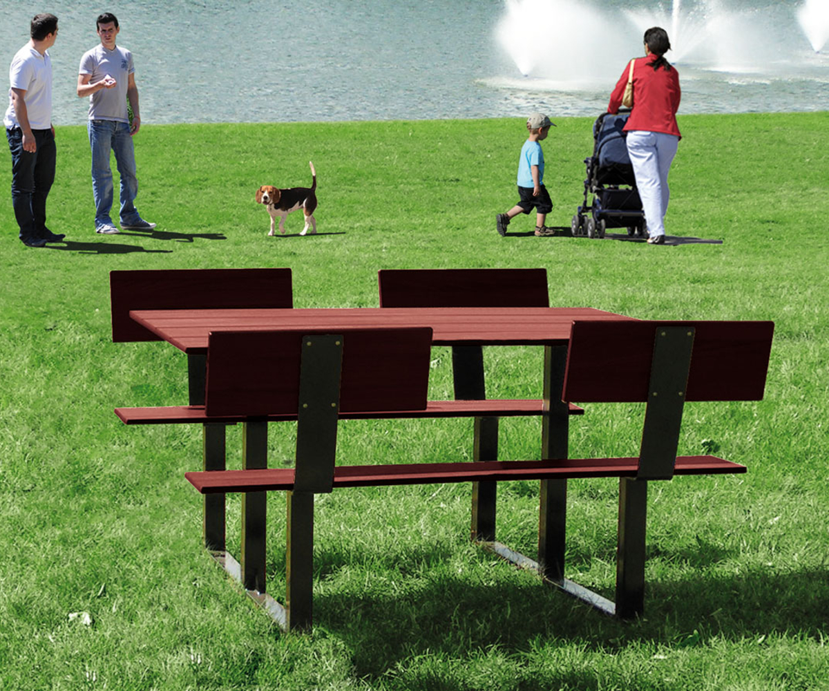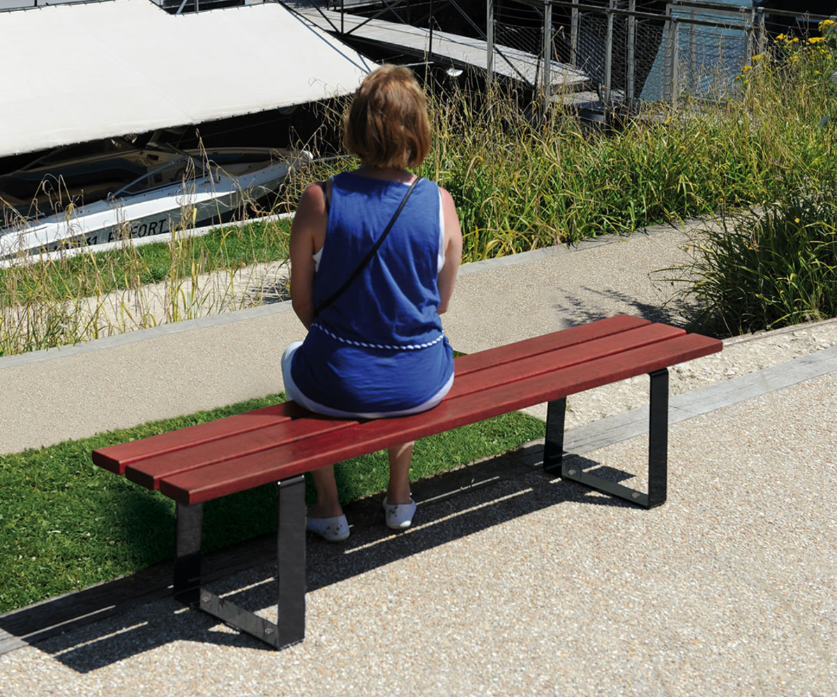 De Riga serie is een strakke robuste uitvoering die zich aan de omgeving aanpast. Het is verkrijgbaar in exotisch hardhout of een economische versie in grenen.