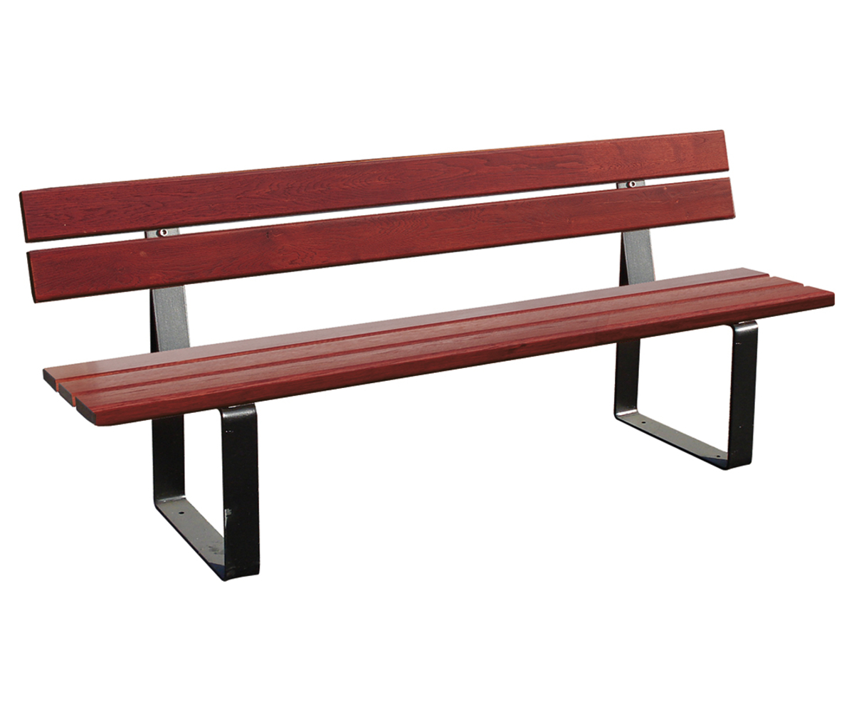 De bank is uitgevoerd in een stalen frame met houten latten.